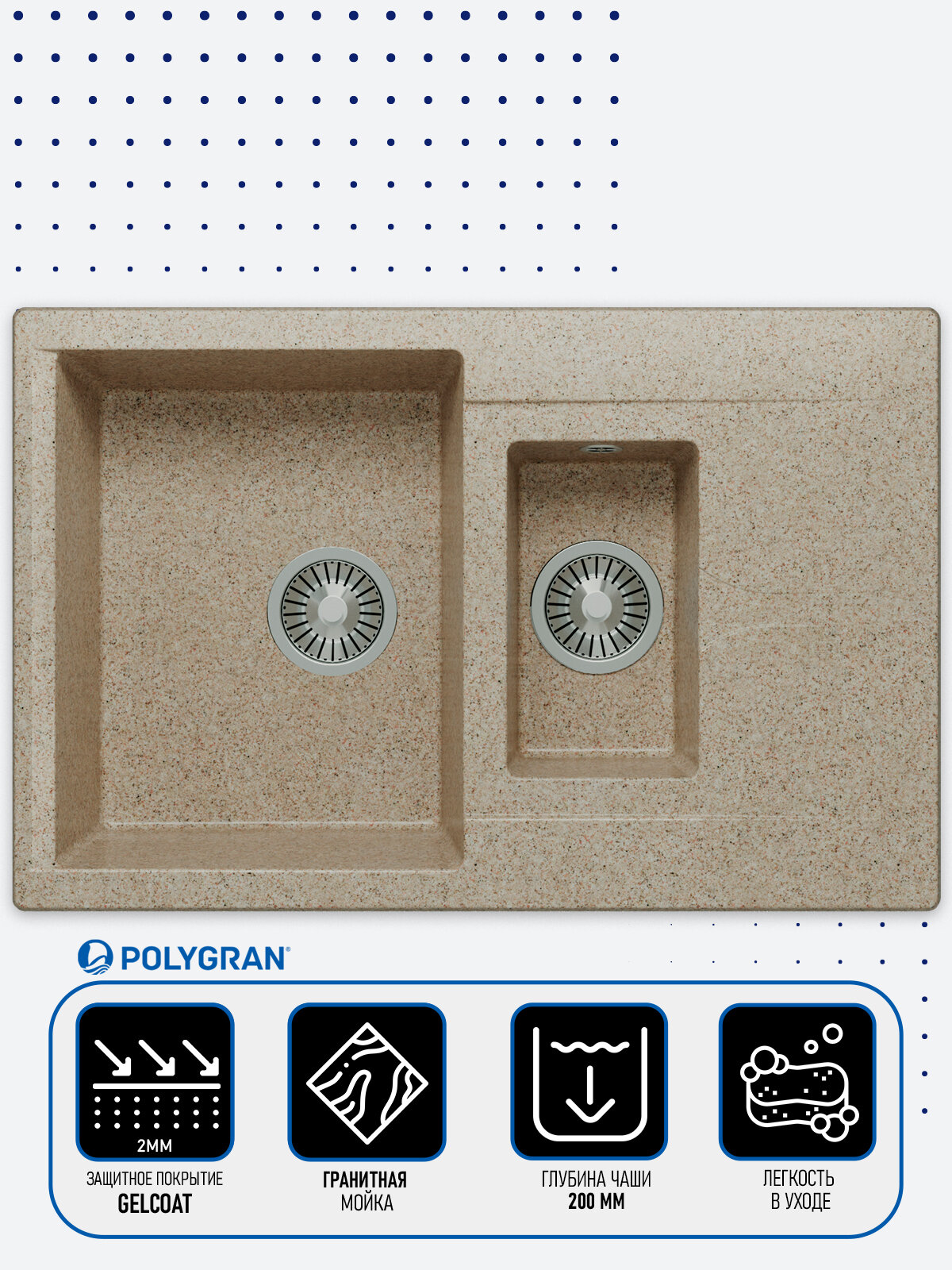 Polygran Мойка кухонная Polygran Brig 770 песочная