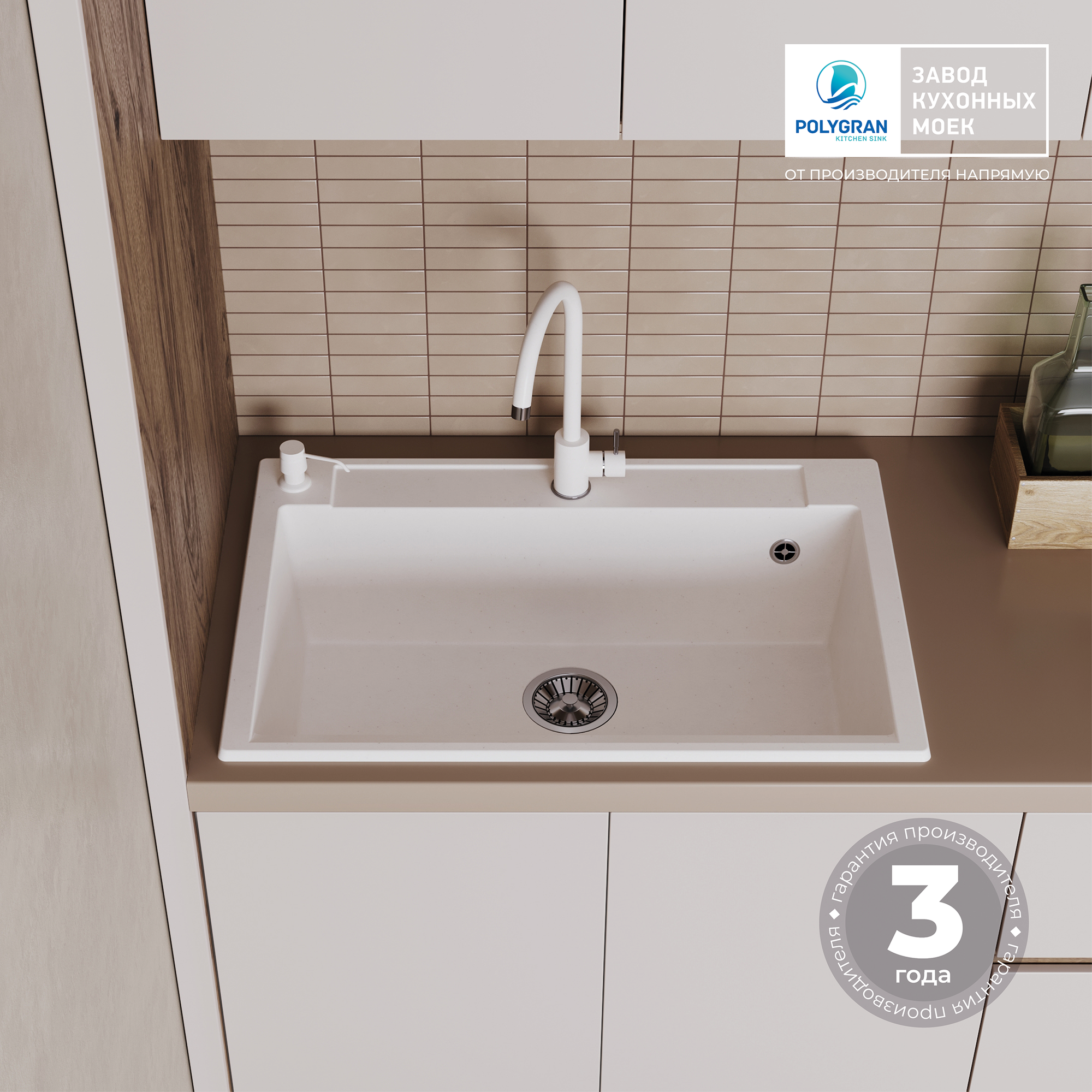 Polygran Мойка кухонная Polygran Argo 760 белый хлопок