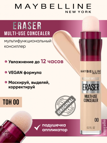 Maybelline New York Консилер для лица и глаз INSTANT ERASER, 01 Светло-бежевый, мультифункциональный, 6.8 мл