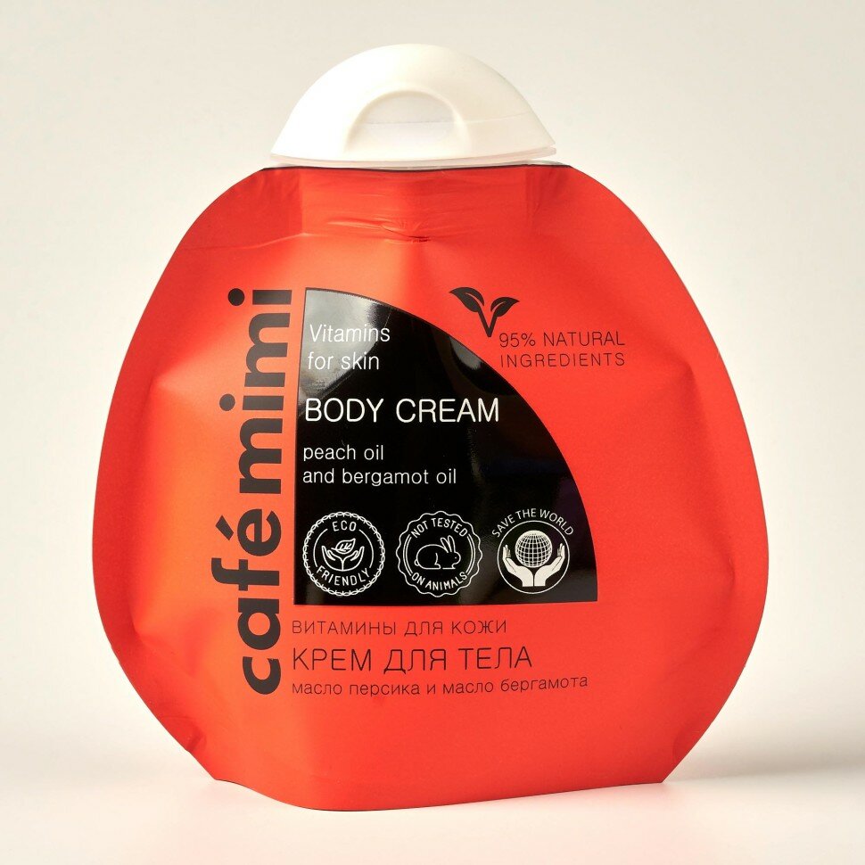 Cafe mimi Крем для тела Витамины для кожи Масло персика и экстракт бергамота 250 мл дой-пак