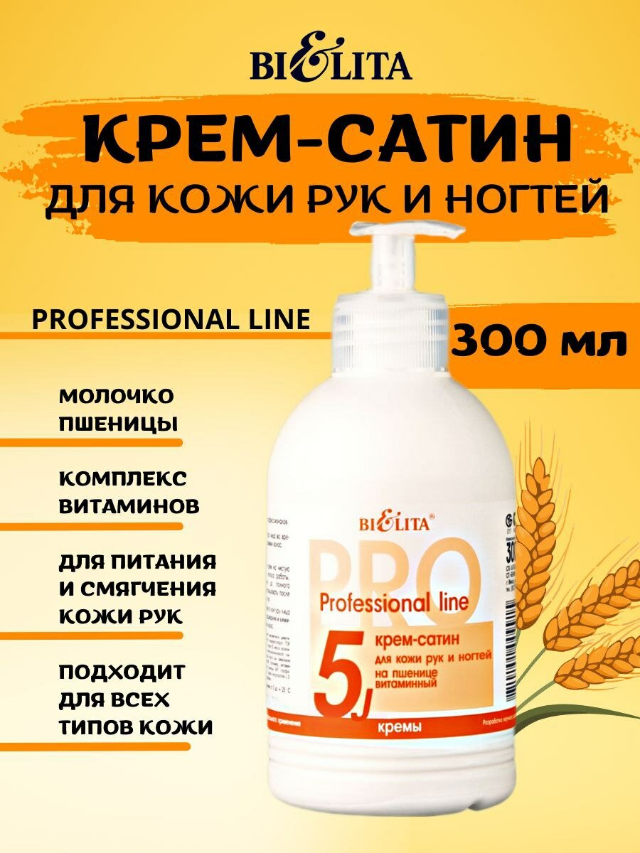 Белита Крем-сатин для кожи рук и ногтей Professional line, на пшенице, Витаминный, 300 мл