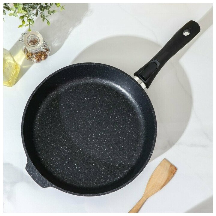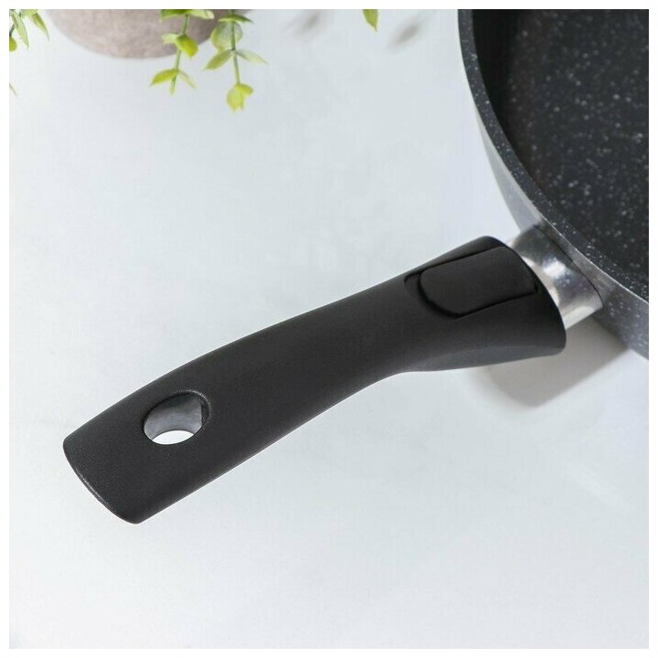 Сковорода, d=28 см, съёмная ручка, антипригарное покрытие, тёмный мрамор интересное: