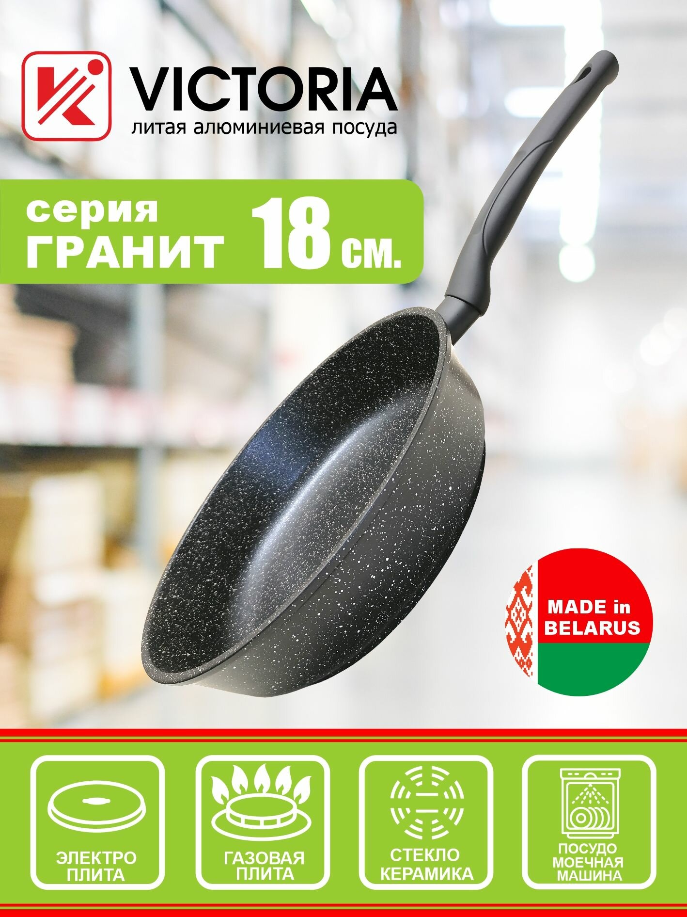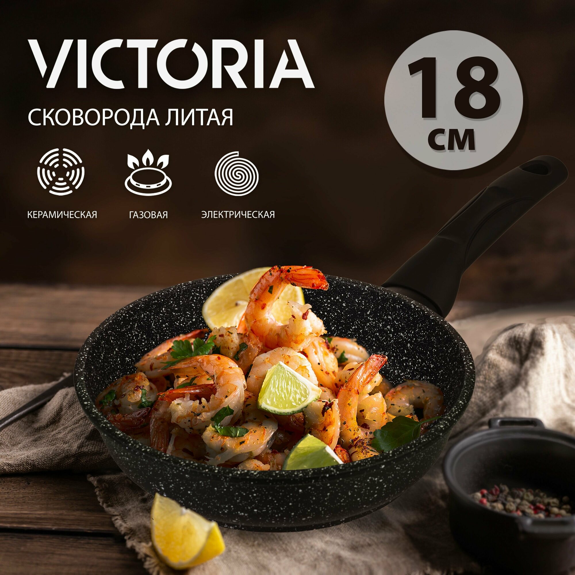 Сковорода VICTORIA "Гранит", 18 см, черная