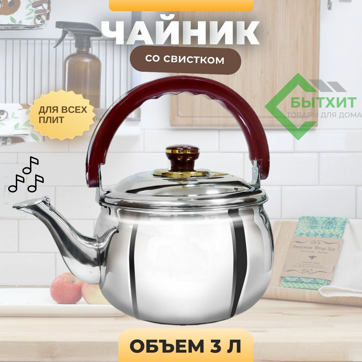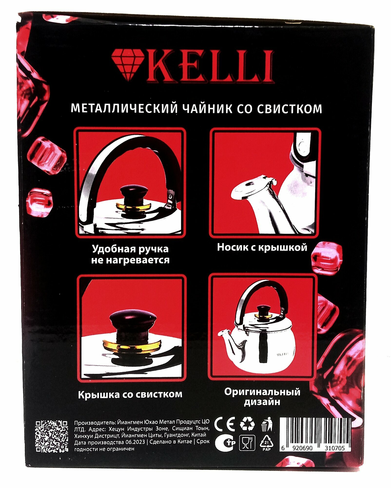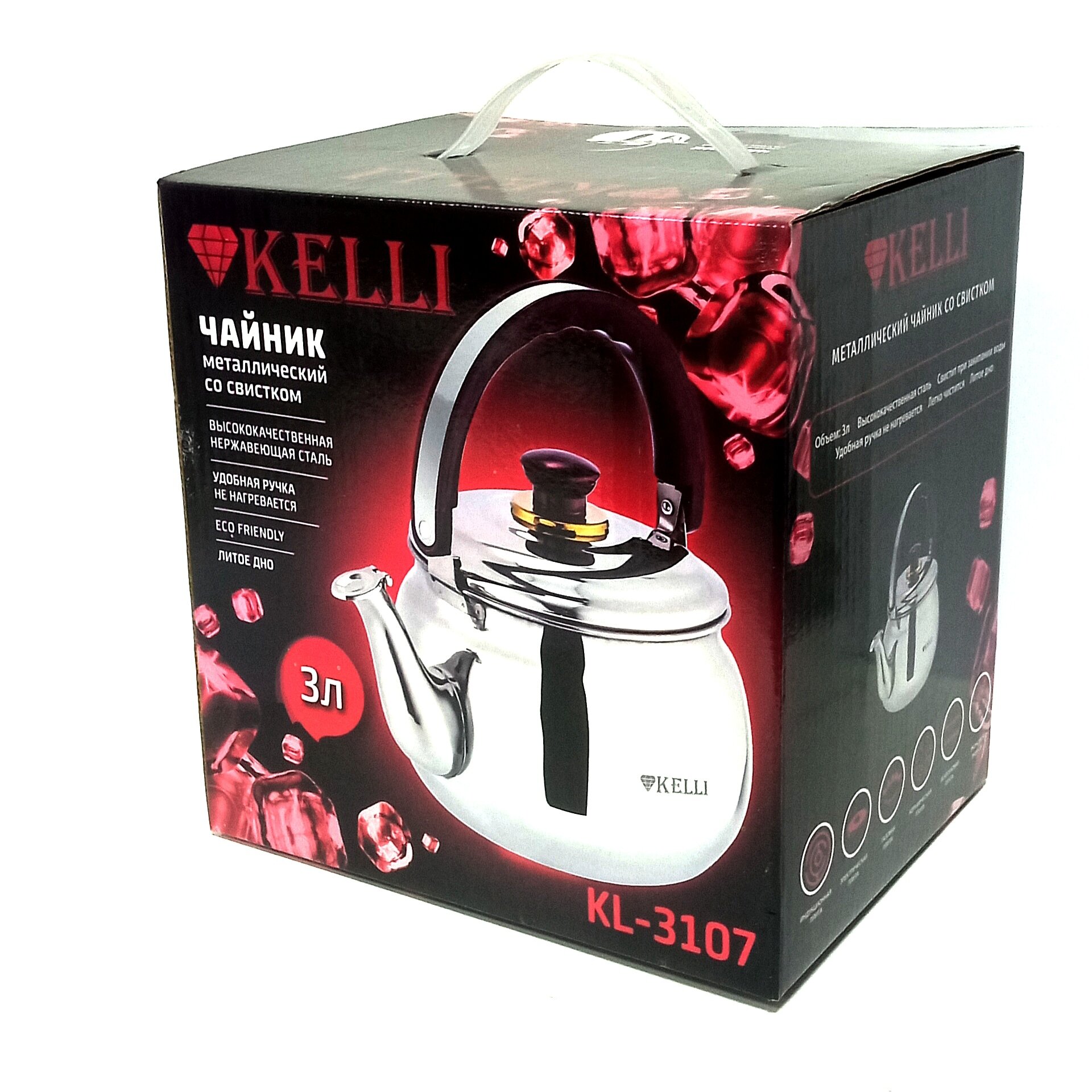 Металлический чайник Kelli KL-3107 со свистком для плиты, 3 л