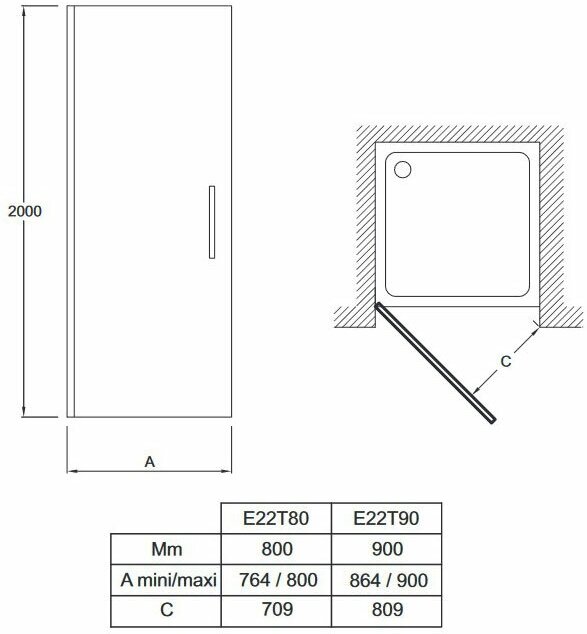 Душевая дверь в нишу Jacob Delafon Contra 90 E22T90-GA