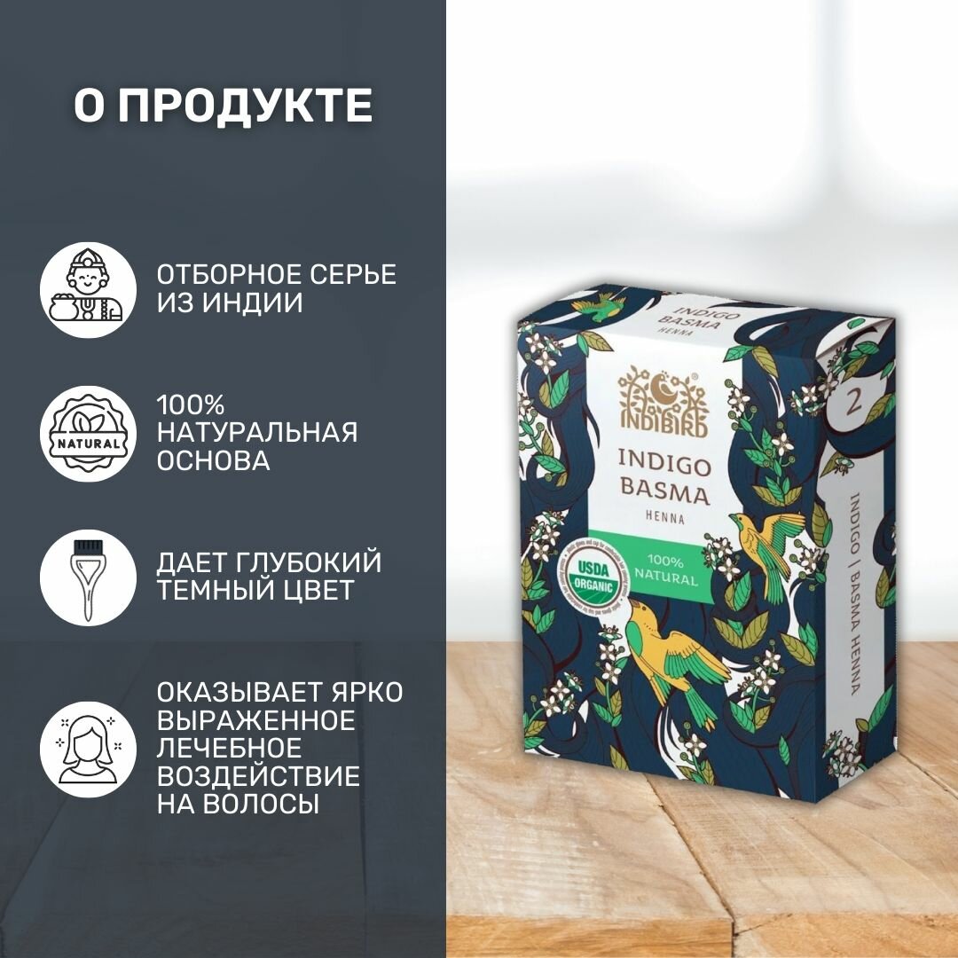 Натуральная краска для волос Индиго Басма Indibird, 100 г