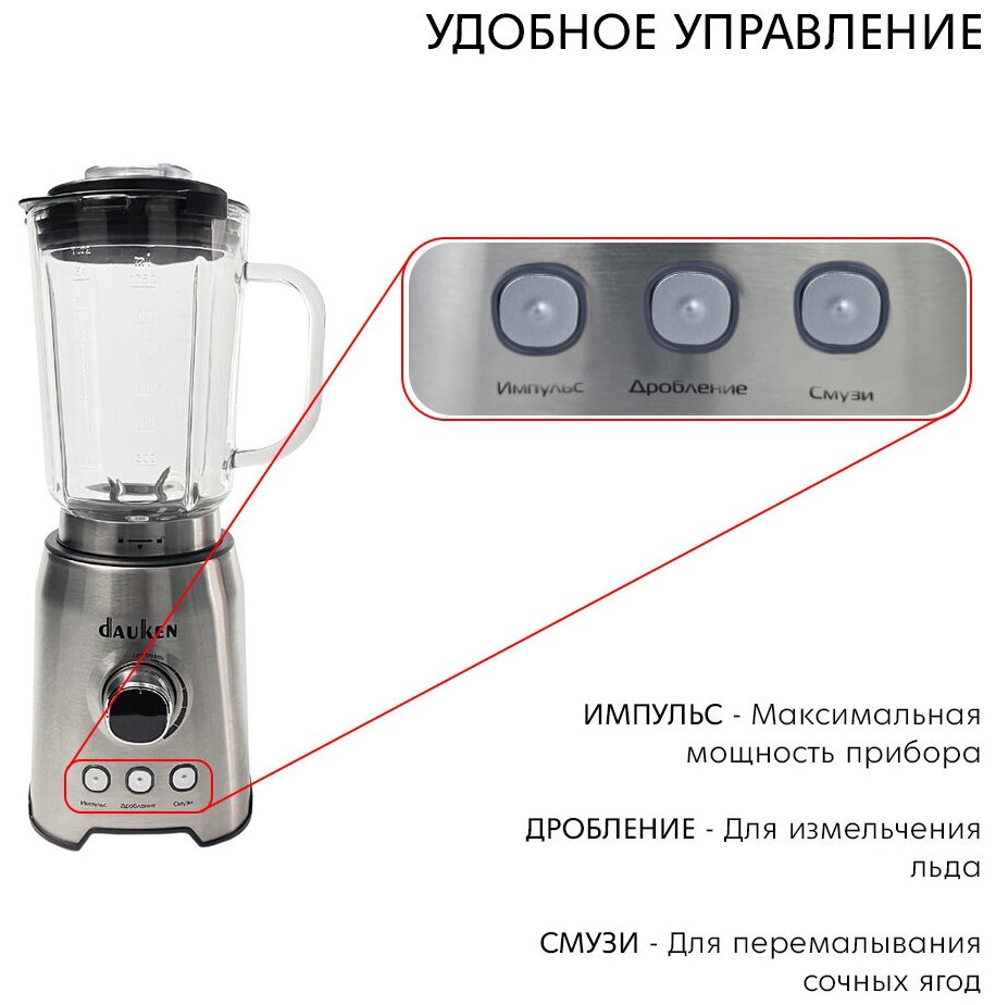 Стационарный блендер Dauken MX650G, домашний для смузи, коктейлей, мороженого, супов-пюре, соусов, детского питания; импульсный режим; колка льда интересное: