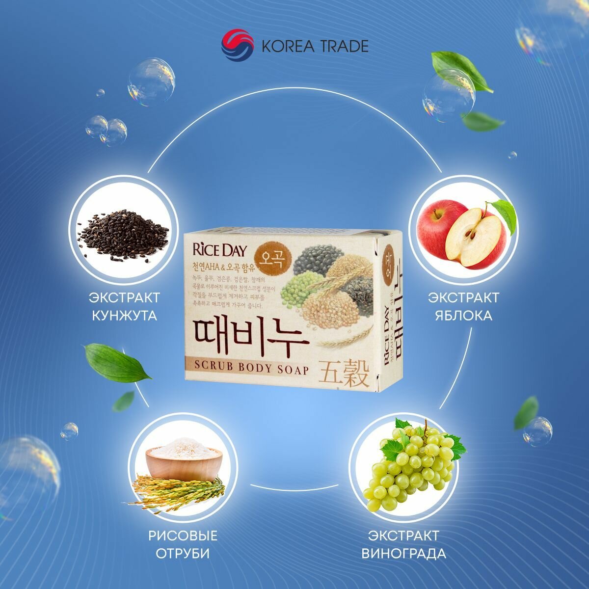 Мыло туалетное CJ LION Riceday с эффектом скраба - Пять злаков,100 г