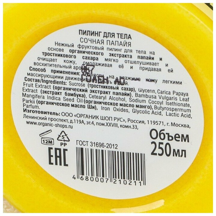 Пилинг для тела Organic Shop Сочная папайа, 250 мл Organic Shop 2422481 .