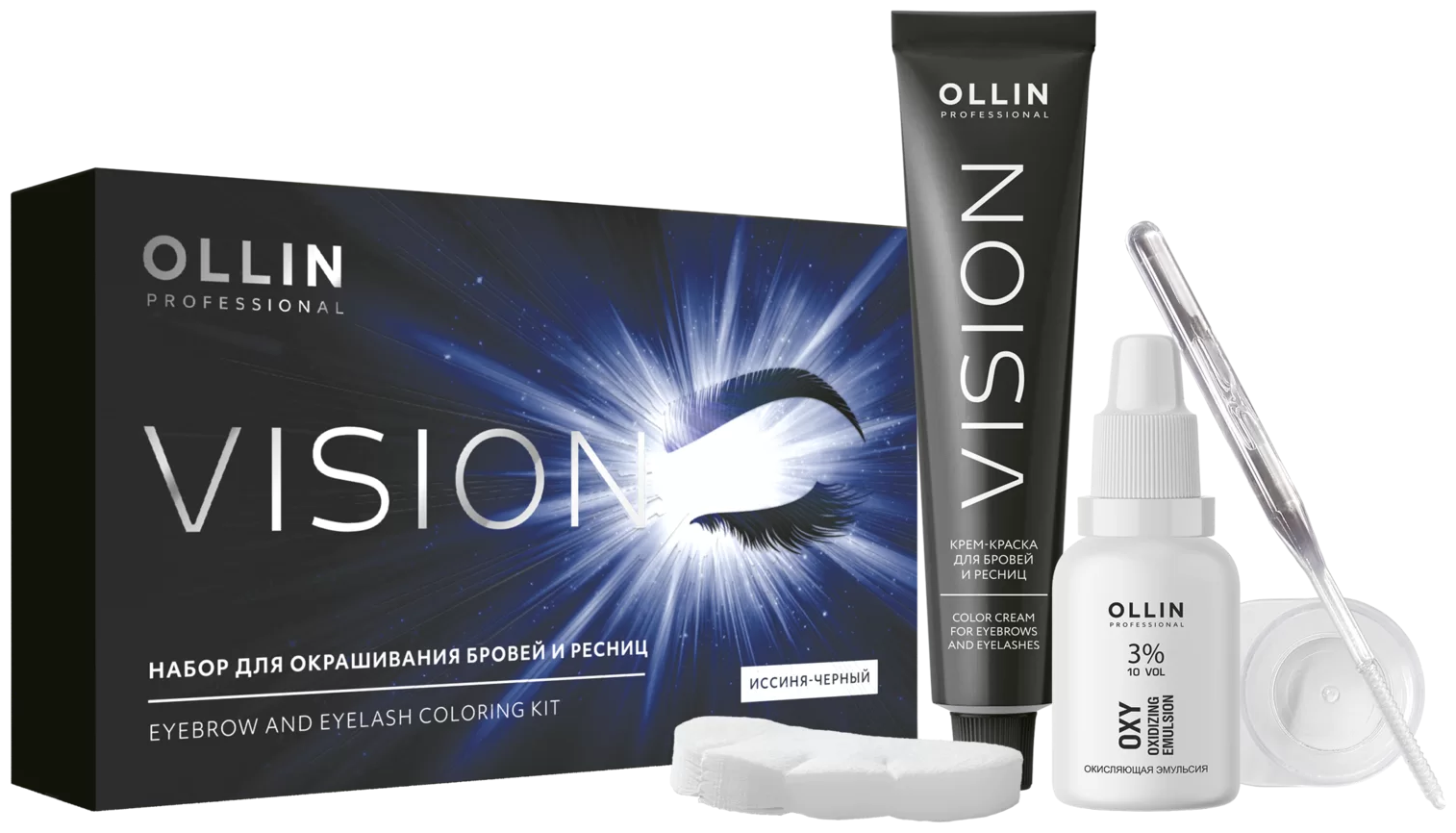 OLLIN VISION Набор для окрашивания бровей и ресниц цвет-Иссиня-чёрный
