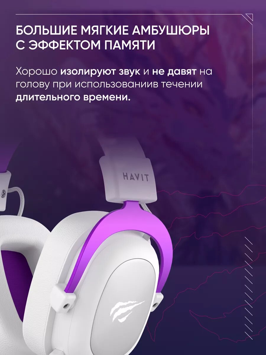 СохранитьИгровая гарнитура HAVIT H2002d 3,5 мм белый/фиолетовый интересное: