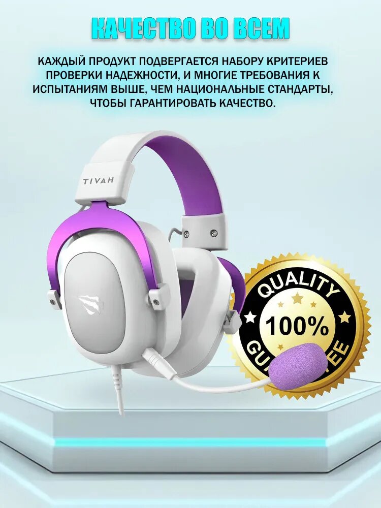 Наушники игровые проводные. Геймерская Гарнитура с микрофоном для ПК, компьютера, ноутбука Havit H2002E белый/фиолетовый 3.5 jack