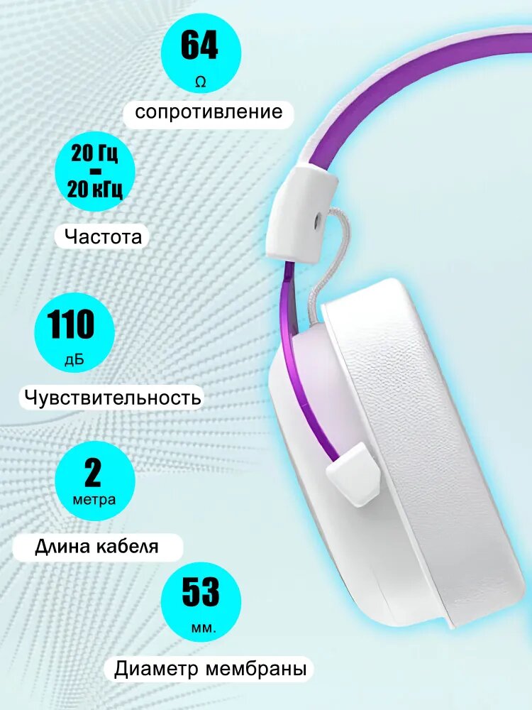 Наушники игровые VOROTEX V2002D-W проводные. Геймерская гарнитура с микрофоном для ПК, компьютера, ноутбука, jack 3,5 мм, белый