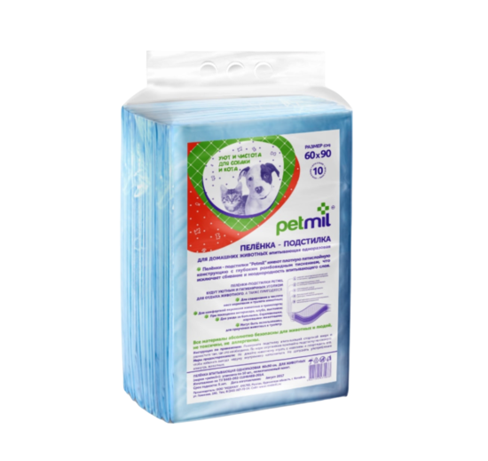 Пеленки (Petmil) впитывающие одноразовые 60*90 10шт для животных