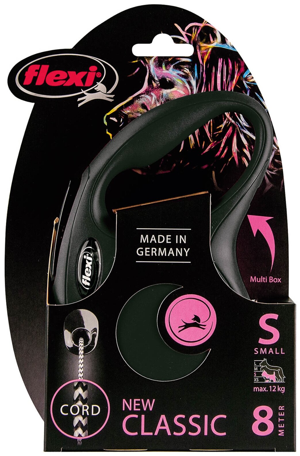 FLEXI NEW CLASSIC CORD – Флекси тросовый поводок-рулетка для животных, 8 м, размер S, черный (1 шт)