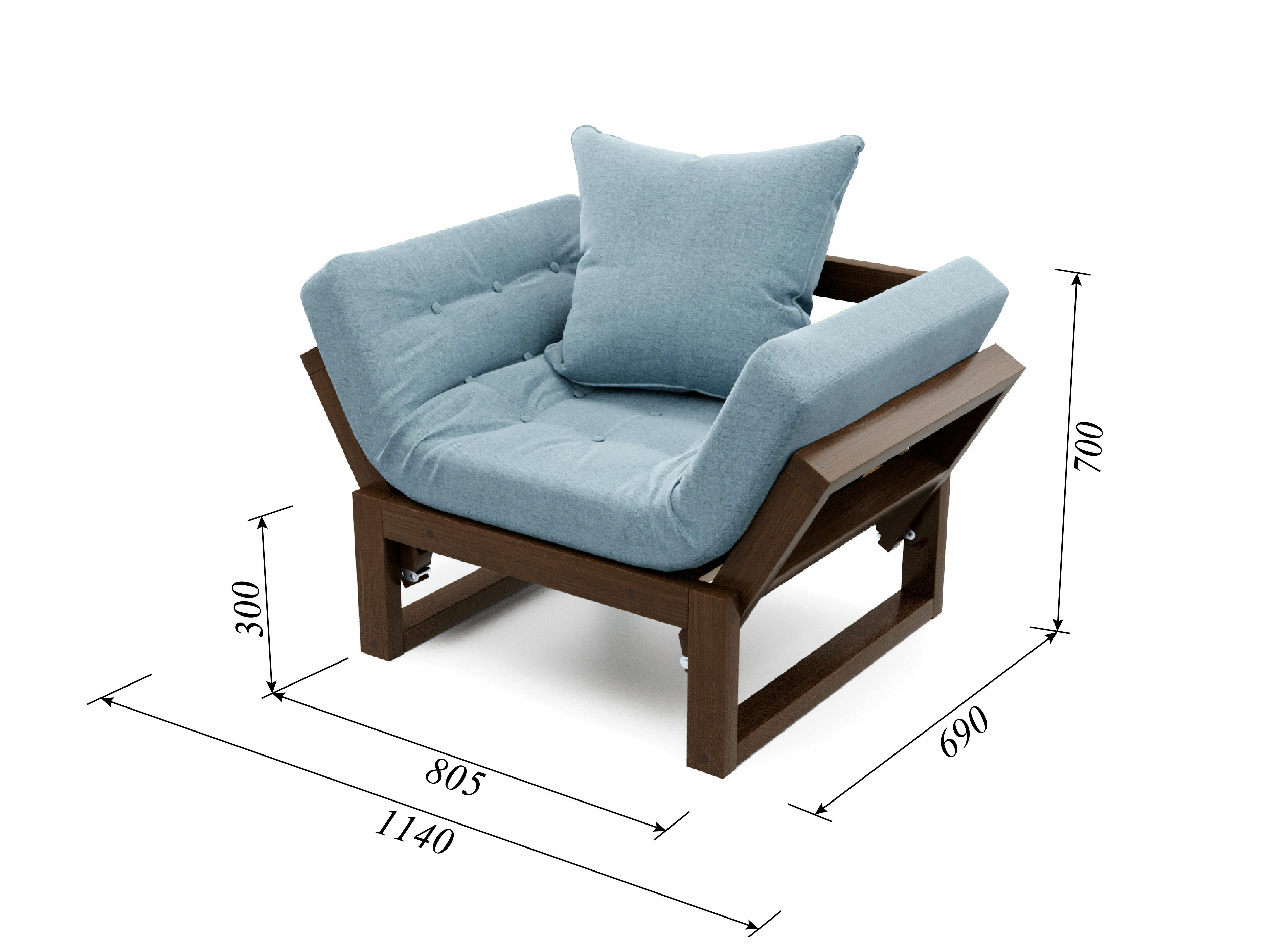 Кресло амбер, синяя-орех, рогожка, деревянное, мягкое, для дачи, для кафе и бара, на веранду, в террасу, для бани