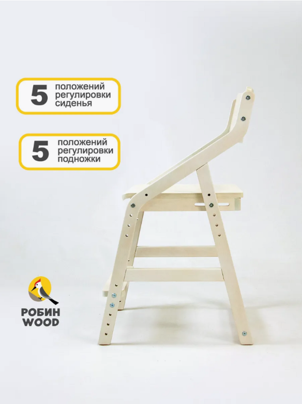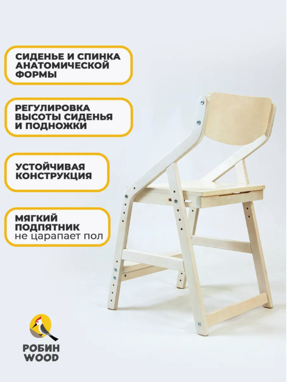 Стул детский регулируемый по высоте для школьника "Робин WOOD" Выбеленное дерево с чехлом Грин интересное: