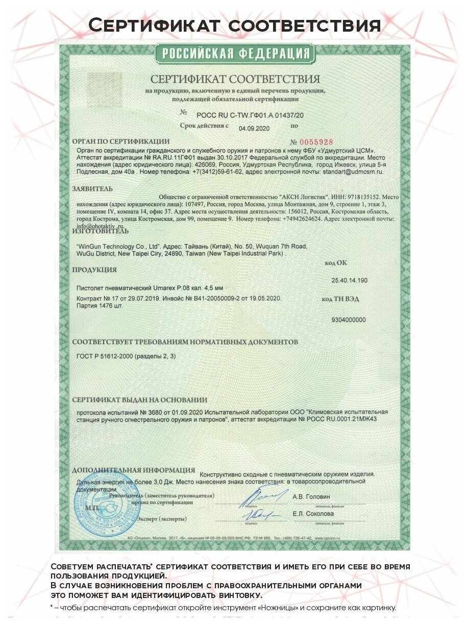 | Назначение | для спортивной стрельбы / для тренировки / Пневматика |