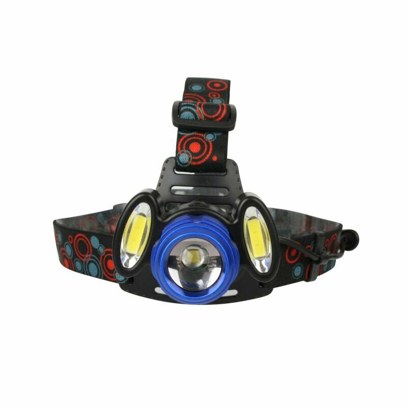 Фонарь налобный E 1334 акк 3,7В, синий /черный, 3LED, 4 Ватт, фокус, 2 ак 4 реж, метал,Ultraflash