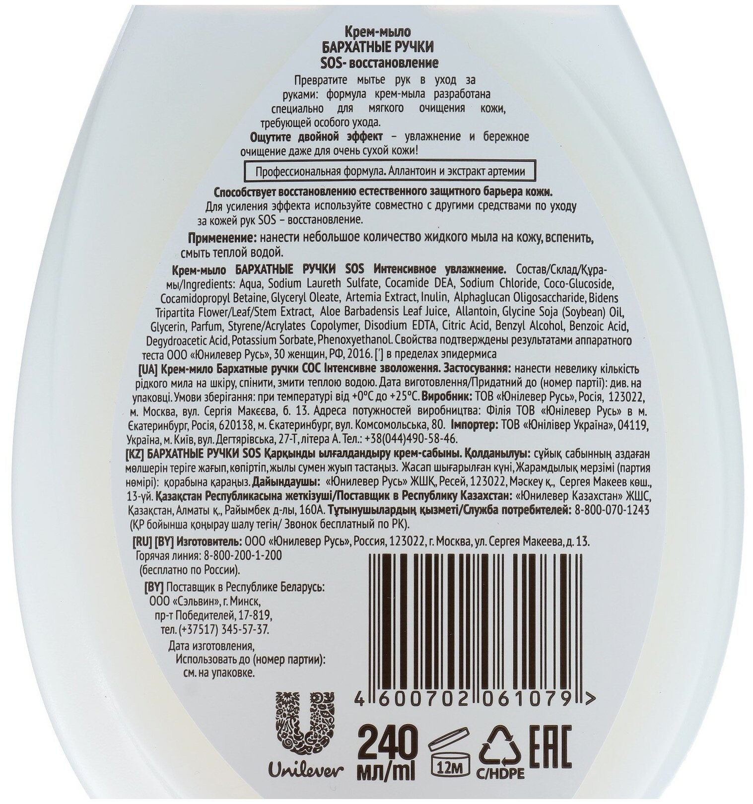 Крем-мыло жидкое Бархатные Ручки SOS интенсивное увлажнение, 240мл 4600702061079