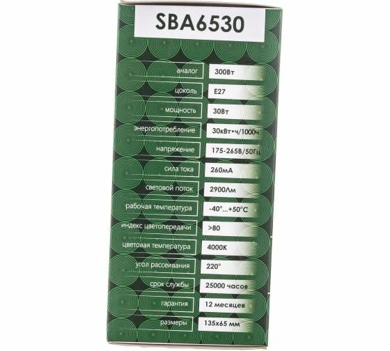 Лампа светодиодная SBA6530 Шар E27 30W 4000K, SAFFIT 55183 (1 шт.)