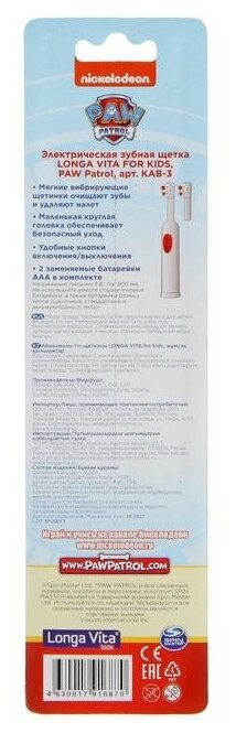 Longa Vita Электрическая зубная щетка Longa Vita Paw Patrol KAB-3, вибрационная, + насадка микс интересное: