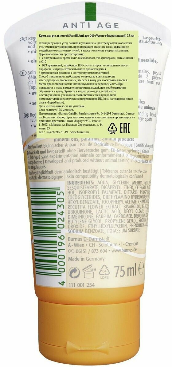 Kamill Anti Age Крем для рук и ногтей с ромашкой, Q10 и UV фильтром 75 мл интересное: