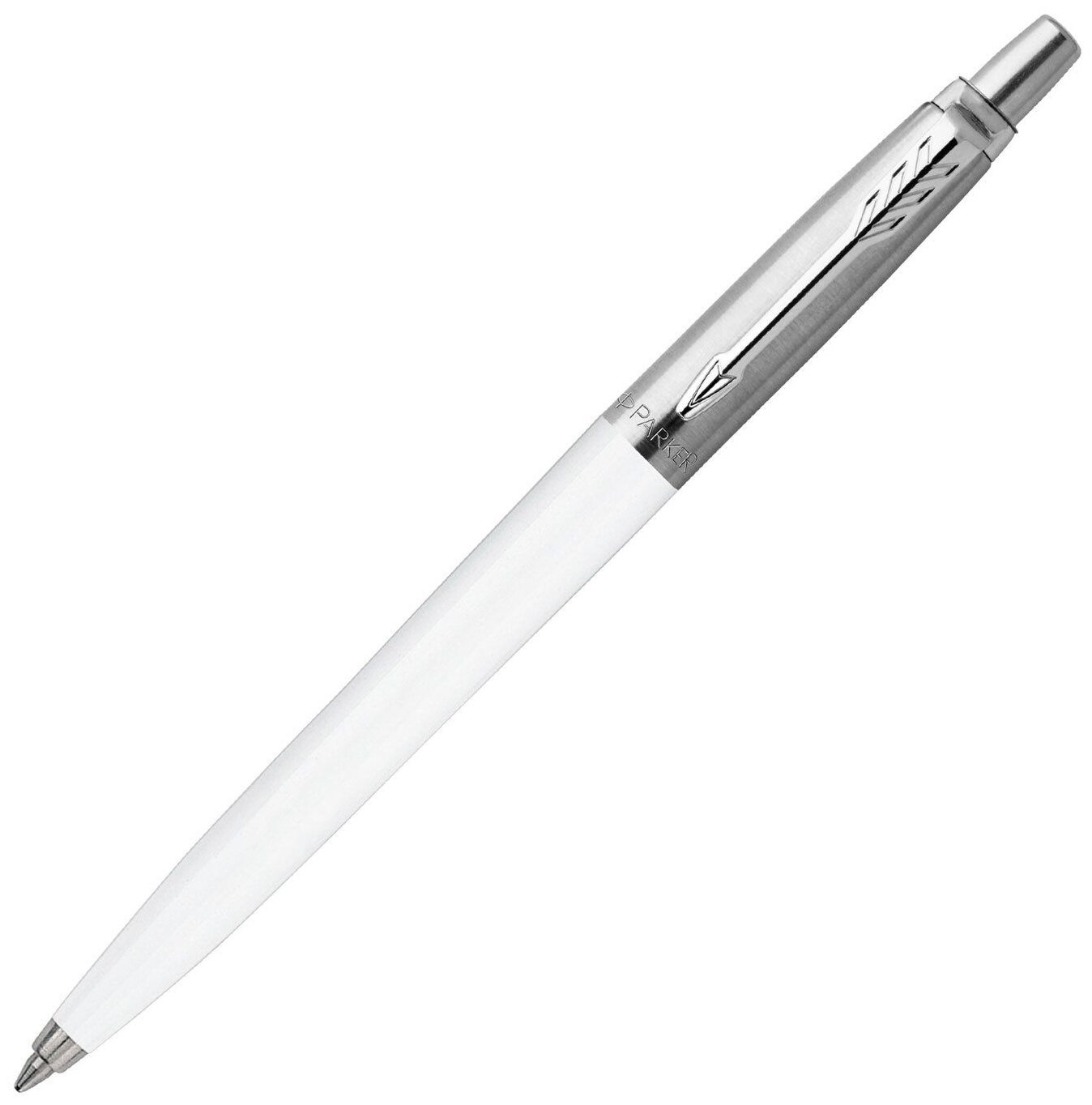 Ручка шариковая Parker "Jotter Plastic CT", корпус белый, детали из нержавеющей стали, синяя (R0032930)