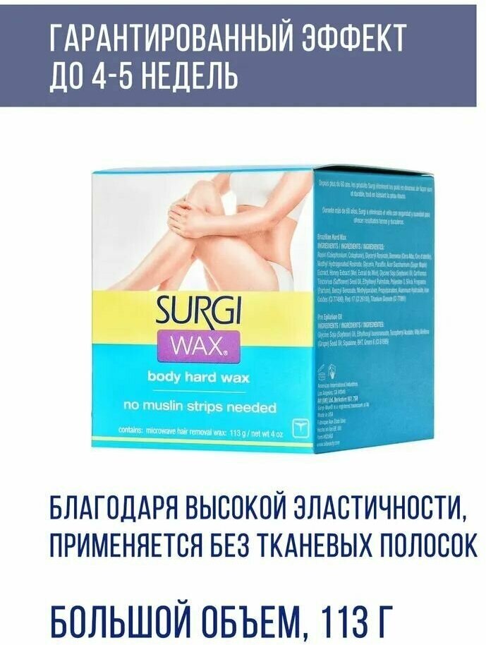 Surgi, Wax Body and Leg, Воск для удаления волос на теле и ногах интересное: