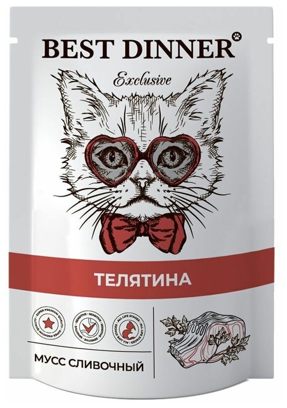 Best Dinner Exclusive консервы для кошек и котят с 1 месяца мусс сливочный с телятиной пауч 24х85г