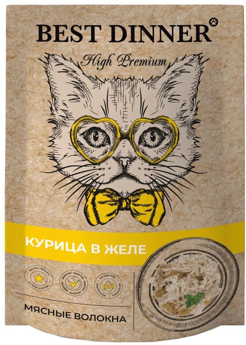 BEST DINNER HIGH PREMIUM для взрослых кошек c курицей в желе пауч 85 гр 85 гр х 10 шт