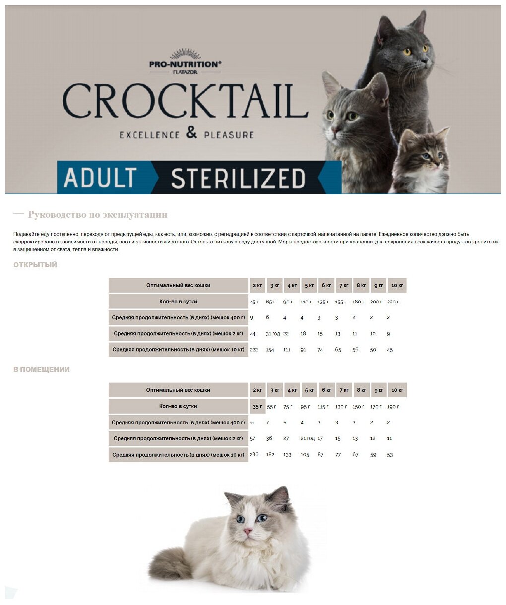 Сухой корм для кошек Flatazor Crocktail Adult Sterilized With Chicken (2кг) интересное: