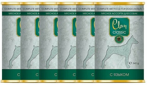 Влажный корм для собак CLAN Classic Мясное ассорти Мясное ассорти, язык 6 шт. х 340 г
