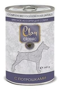 Корм полнорационный консервированный Clan CLASSIC для собак, Мясное ассорти с потрошками, 340г, 12 шт.