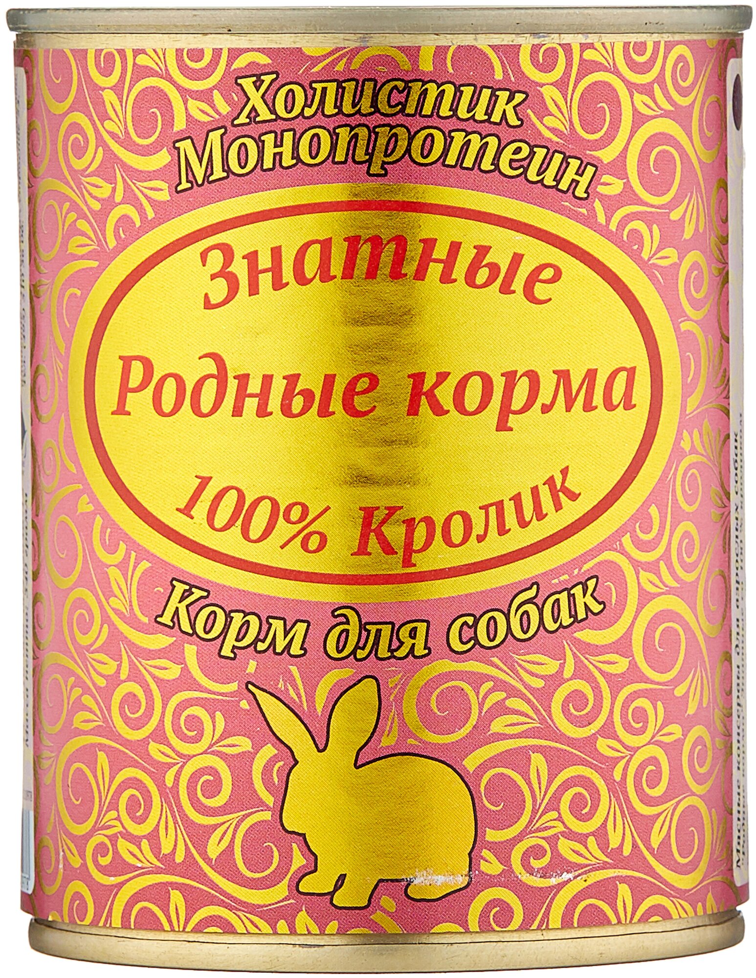 Родные корма Консервированный корм для собак Знатные консервы 100 РїСЂРѕС†. кролик 340 г 69109