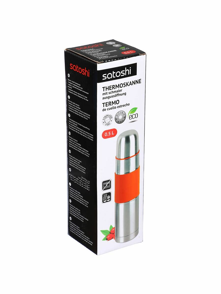 Классический термос Satoshi Kitchenware Ямато 841633, 0.5 л, серебристый/оранжевый