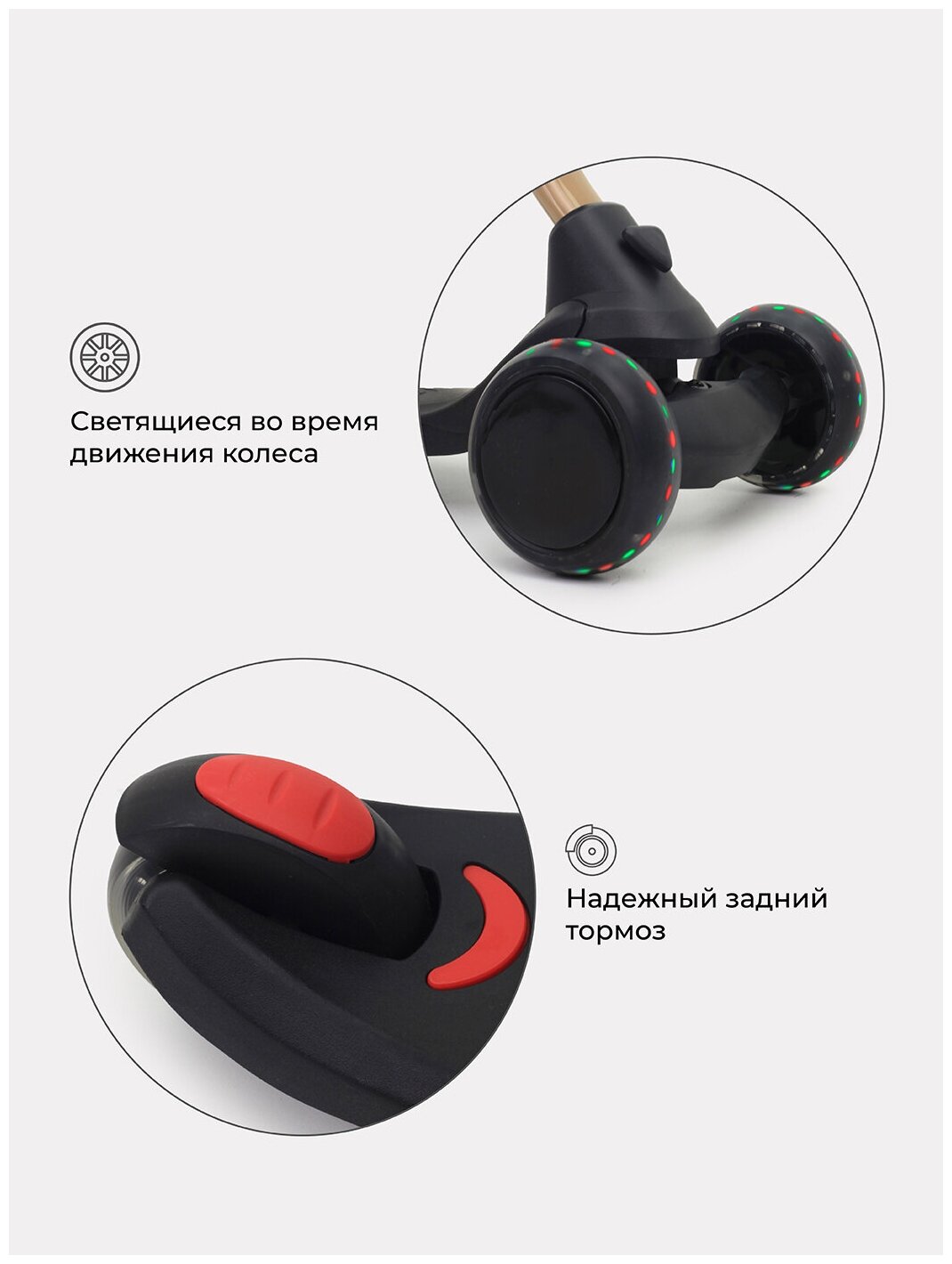 | Конструктивные особенности | светящиеся колеса / сиденье съемное / трансформер |