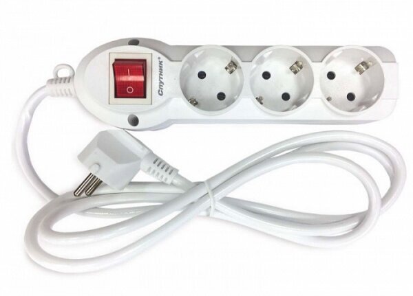 Сетевой удлинитель Спутник ВК-303, 3 розетки, 3 м, белый