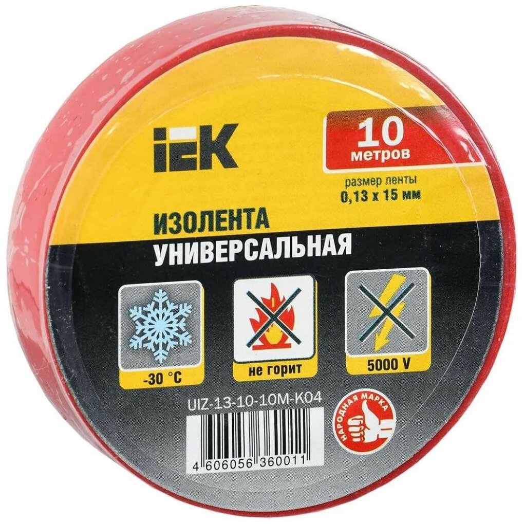 Изолента IEK 0,13х15 мм, красная, 10 метров UIZ-13-10-10M-K04