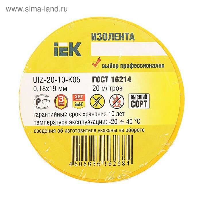 Купить Изолента ПВХ 0.18х19мм желт. (рул.20м) IEK UIZ-20-10-K05