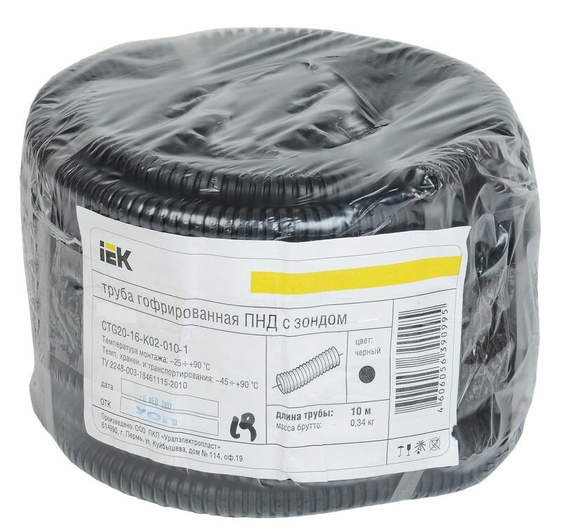 Труба гофрированная ПНД d20мм с протяжкой черн. (уп.10м), IEK CTG20-20-K02-010-1 (1 упак)