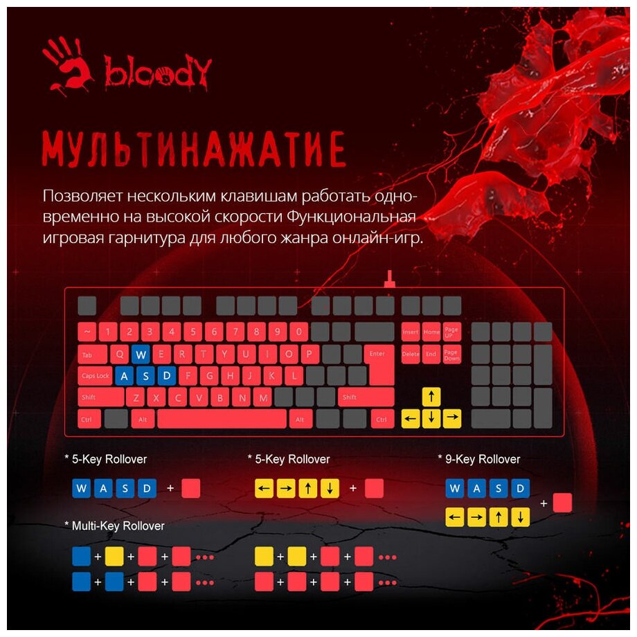 Клавиатура игровая проводная с ргб подсветкой, мембранная клавиатура A4TECH Bloody, серая интересное: