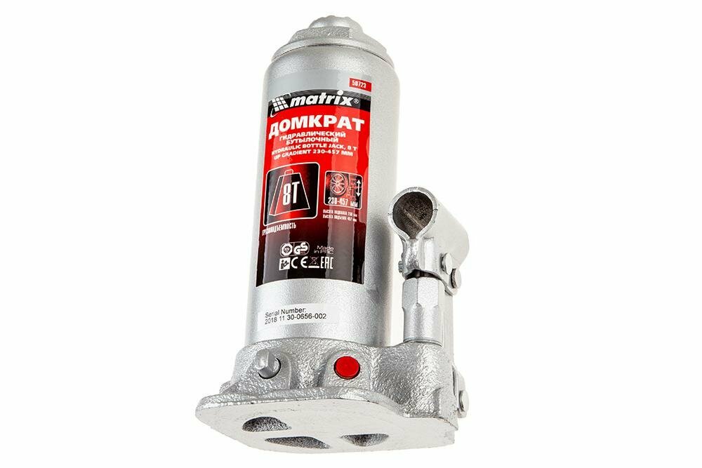 Домкрат гидравлический бутылочный, 8 т, высота подъема 230-457 мм Matrix (50723)