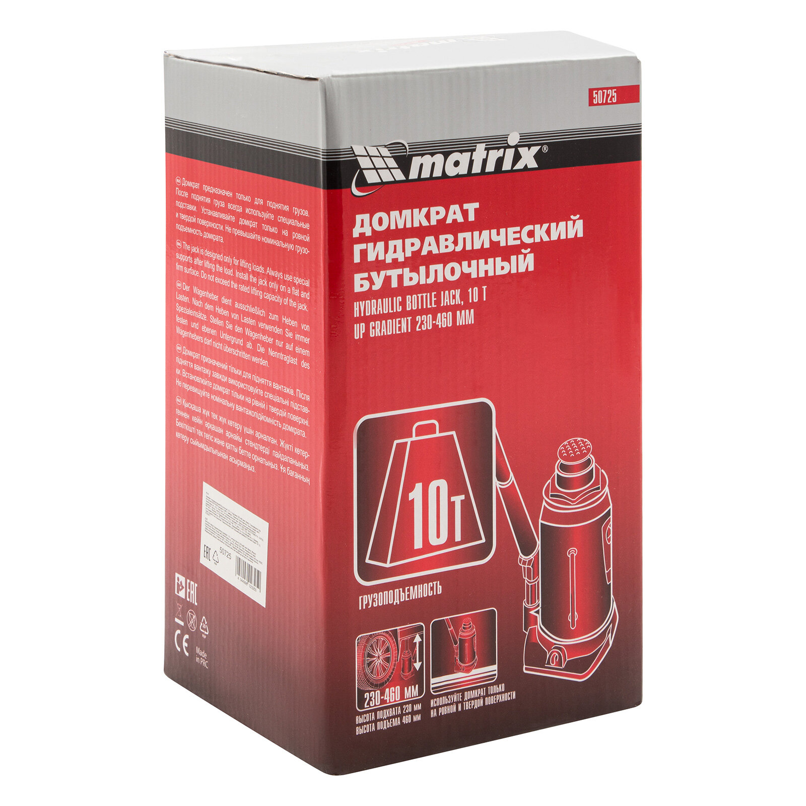 50725 MATRIX 50725_домкрат! гидравлический бутылочный, 10т, h подъема 230-460мм\
