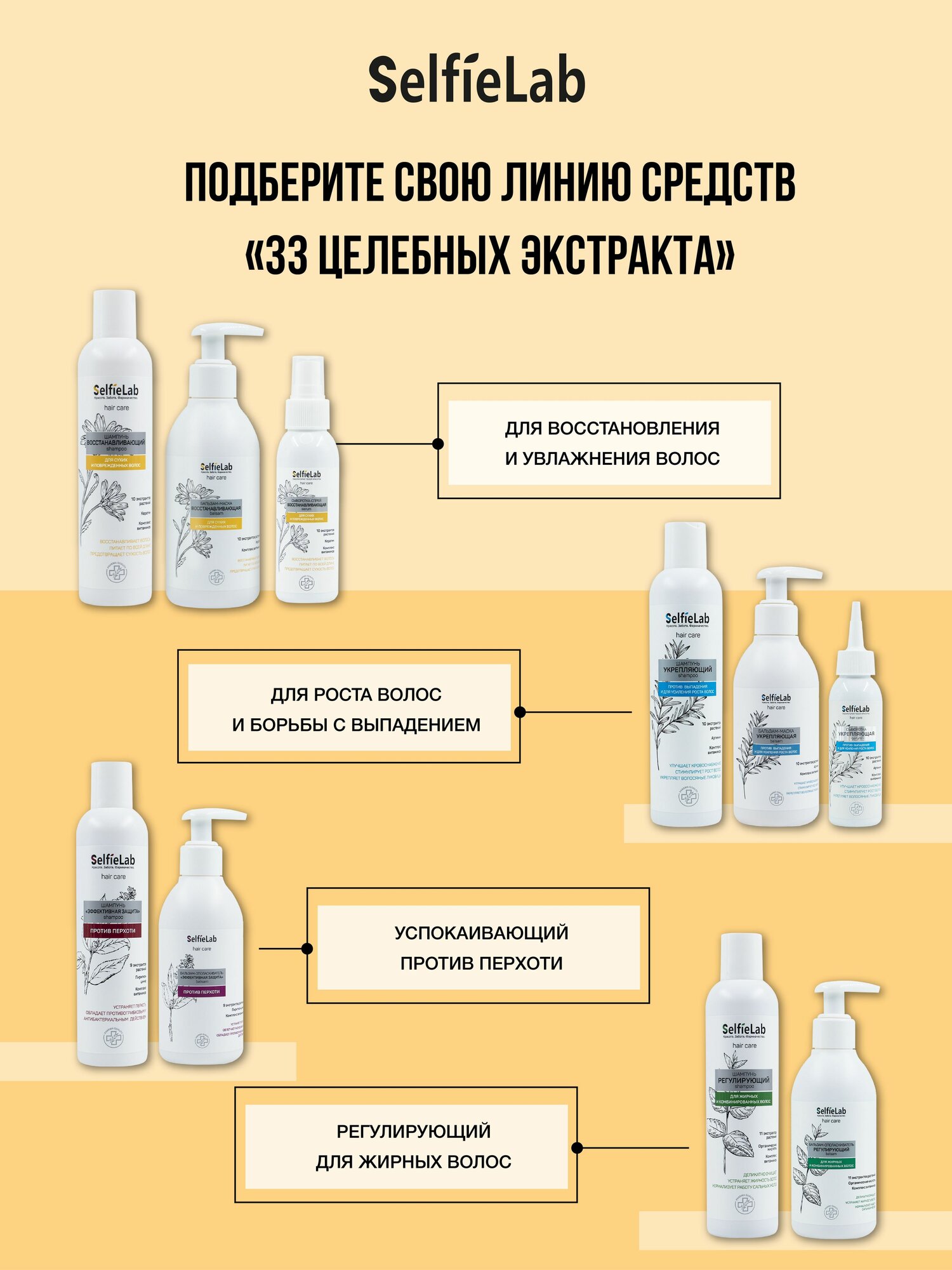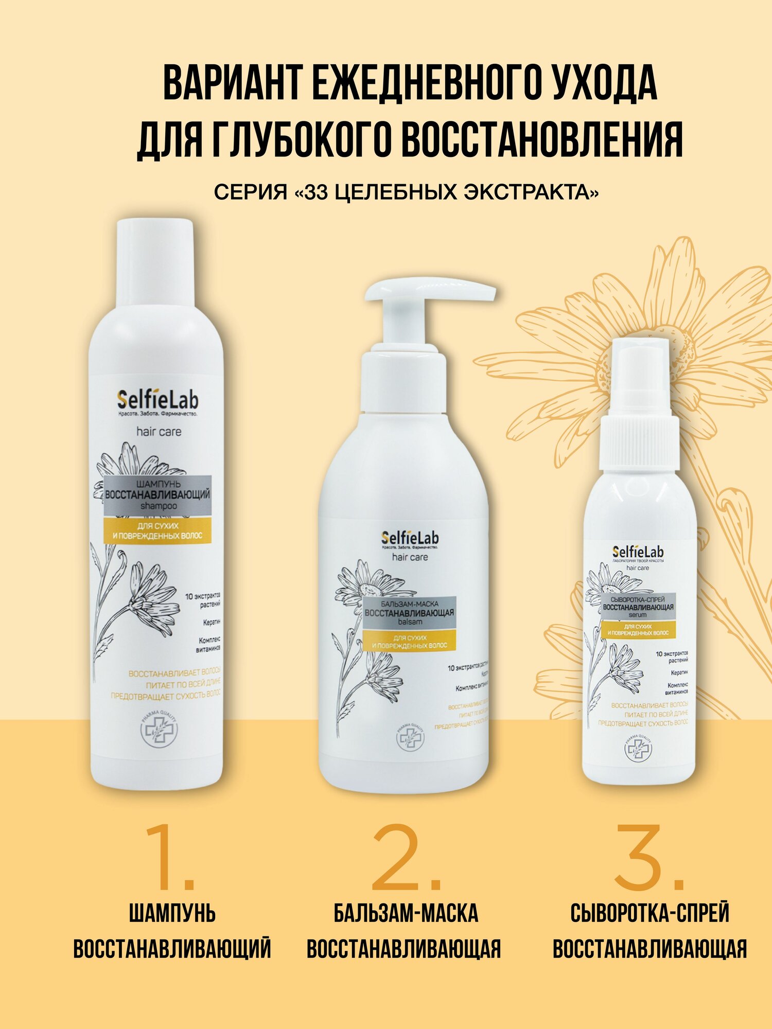Купить Бальзам-маска восстанавливающая, для волос, линия "33 целебных экстракта", товарный знак SelfieLab, флакон 200 мл