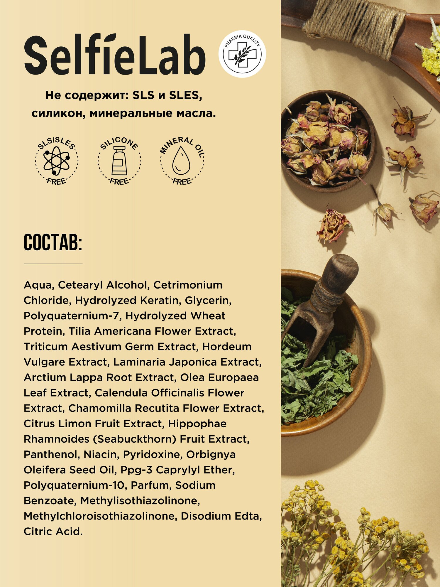 SelfieLab бальзам-маска Восстанавливающая с кератином натуральными экстрактами растений и комплексом витаминов 200мл