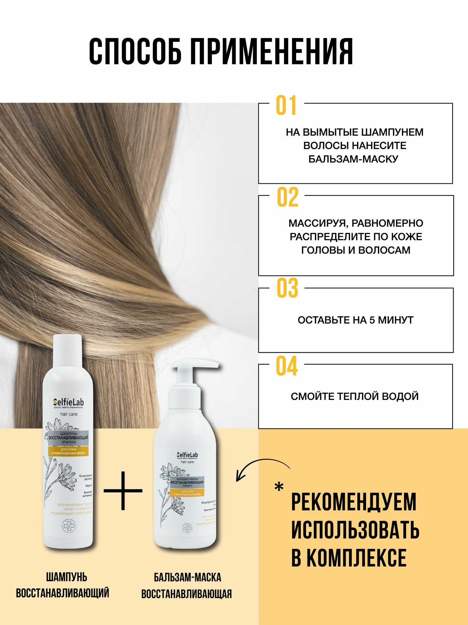 SelfieLab бальзам-маска Восстанавливающая с кератином, натуральными экстрактами растений и комплексом витаминов 150мл
