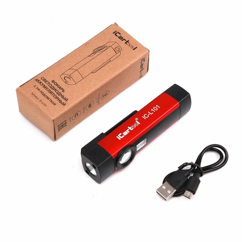 iCarTool Светодиодный фонарь с УФ подсветкой, аккумуляторный, 3 режима работы IC-L101