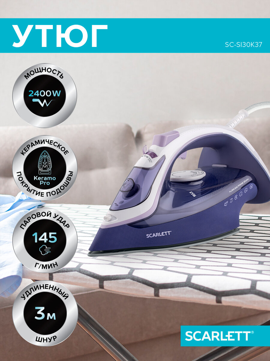 Ниже Вы можете прочитать отзывы на Утюг Scarlett SC-SI30K37, фиолетовый/розовый, ознакомится с подробными характеристиками, посмотреть интересные обзоры и фотографии на Утюг Scarlett SC-SI30K37, фиолетовый/розовый.
