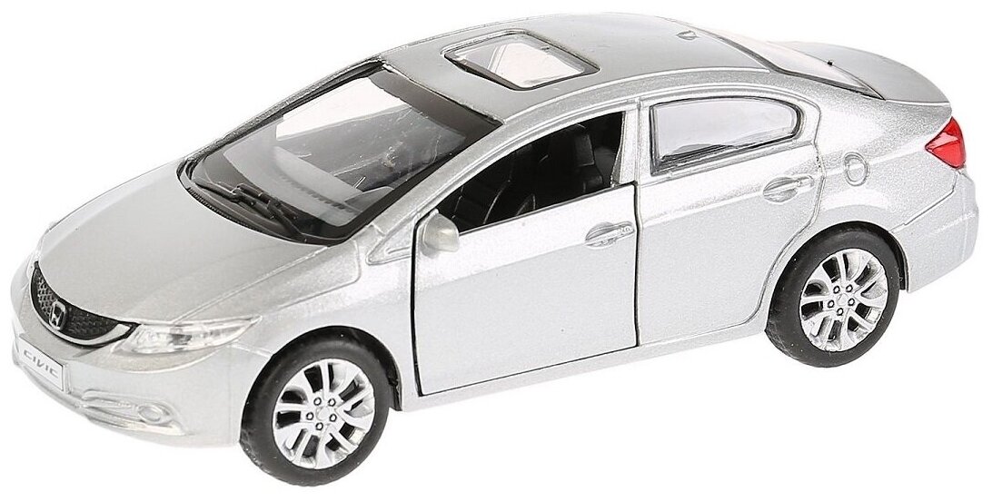 Машинка детская Honda Civic 12 см, Технопарк, серебристая, открываются двери и багажник, металлический корпус